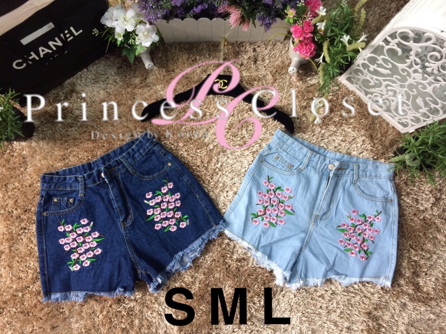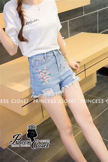 กางเกงยีนส์ ขาสั้น สีซีด -สีเข้ม ปักดอกซากุระ สีสวย ใส่สวยเซ็กซี่