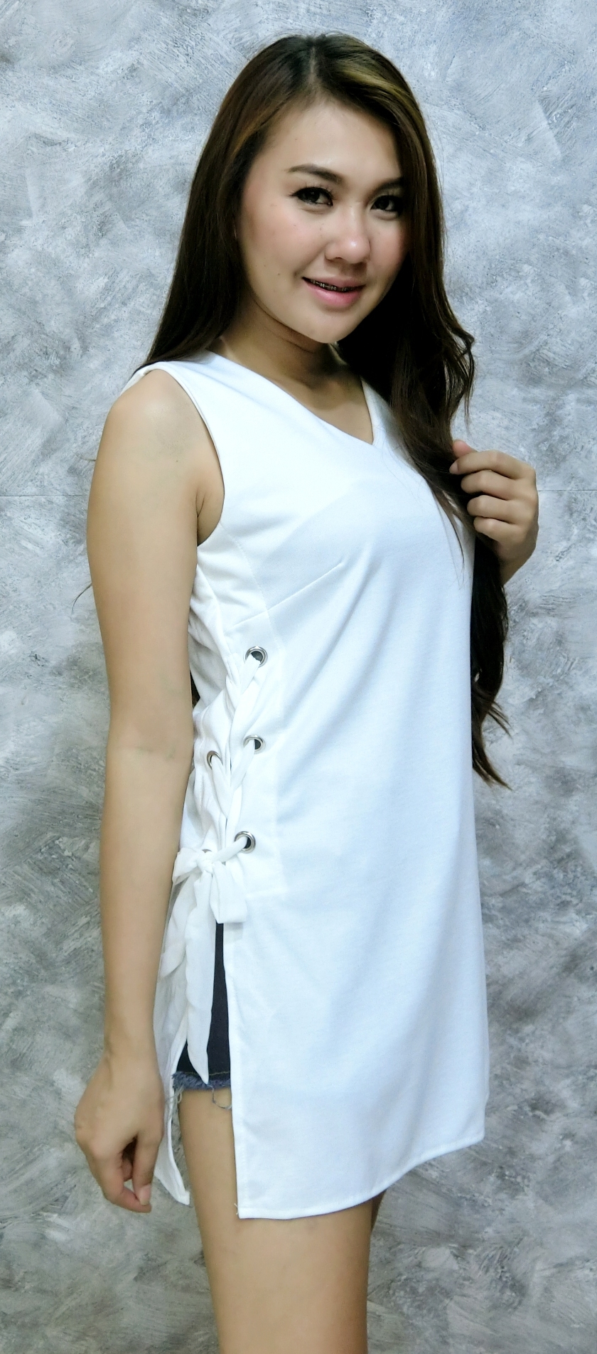 เสื้อกล้ามเข้ารูป เจาะตาไก่ ถักข้างตัว งานสวยเก๋เริสมาก ขายดีมาก
