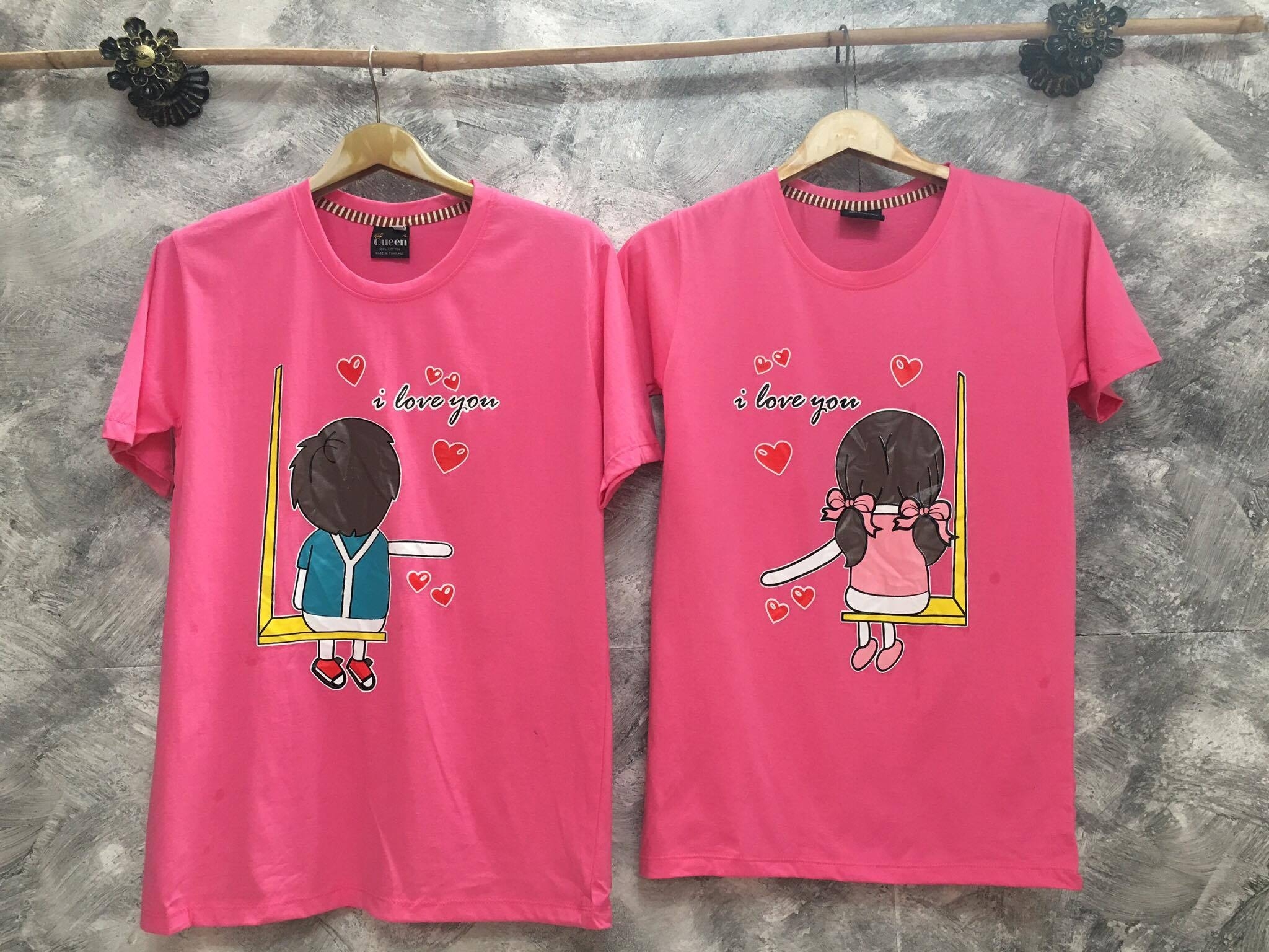 เสื้อคู่ลายน่ารัก เอเวอร์รีติ้งชิงเกอร์เบล มาก เนื้อผ้าคอตตอน สวยๆๆ ลายสกีนสุดชิค ใส่ตอนรับเทศกาล Valentine'Day ที่จะมาถึงนี้รีบสอยของมีน้อย รอบนี้