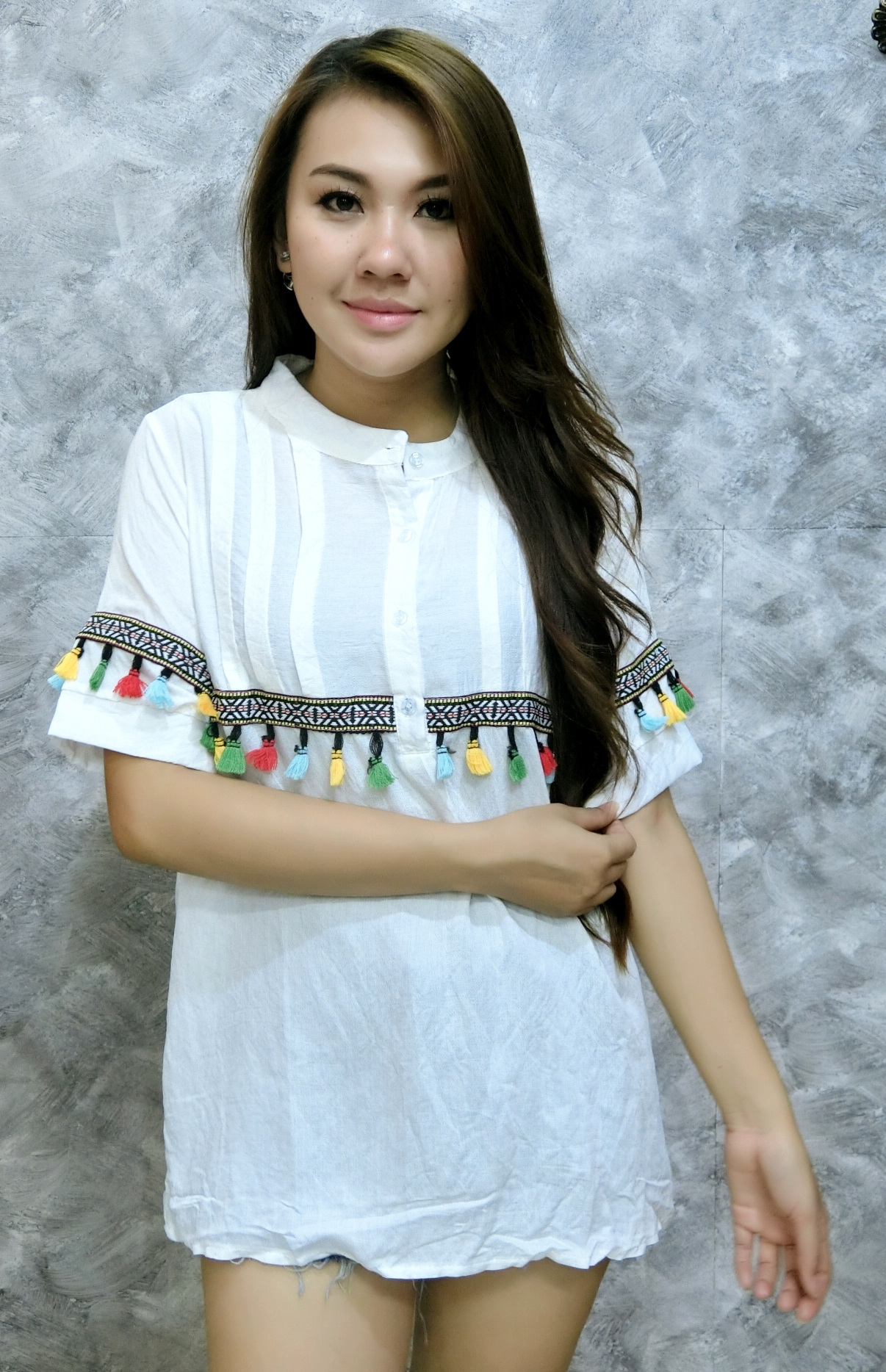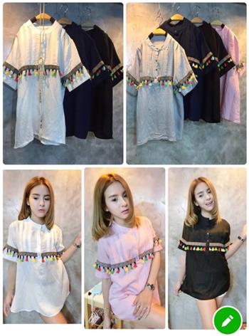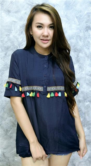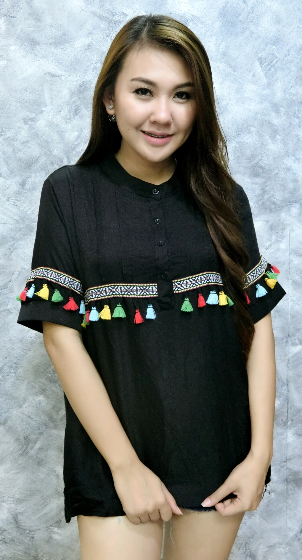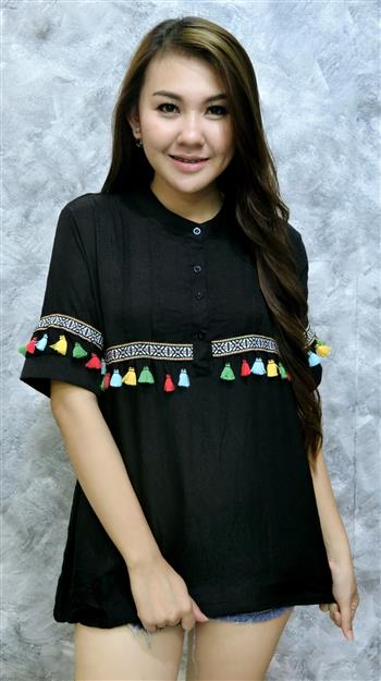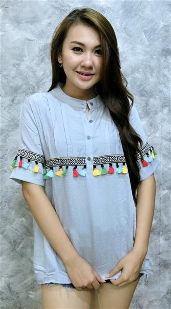 เสื้อผ้าคอตตอน คอจีนแต่งพู่ๆๆ ดีเทลเก๋มาก