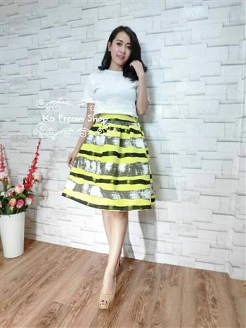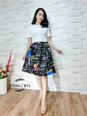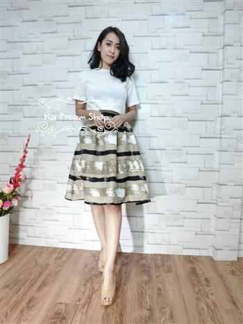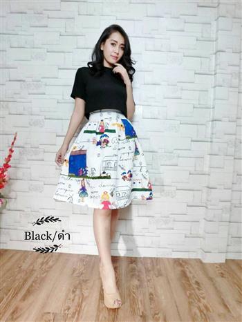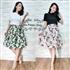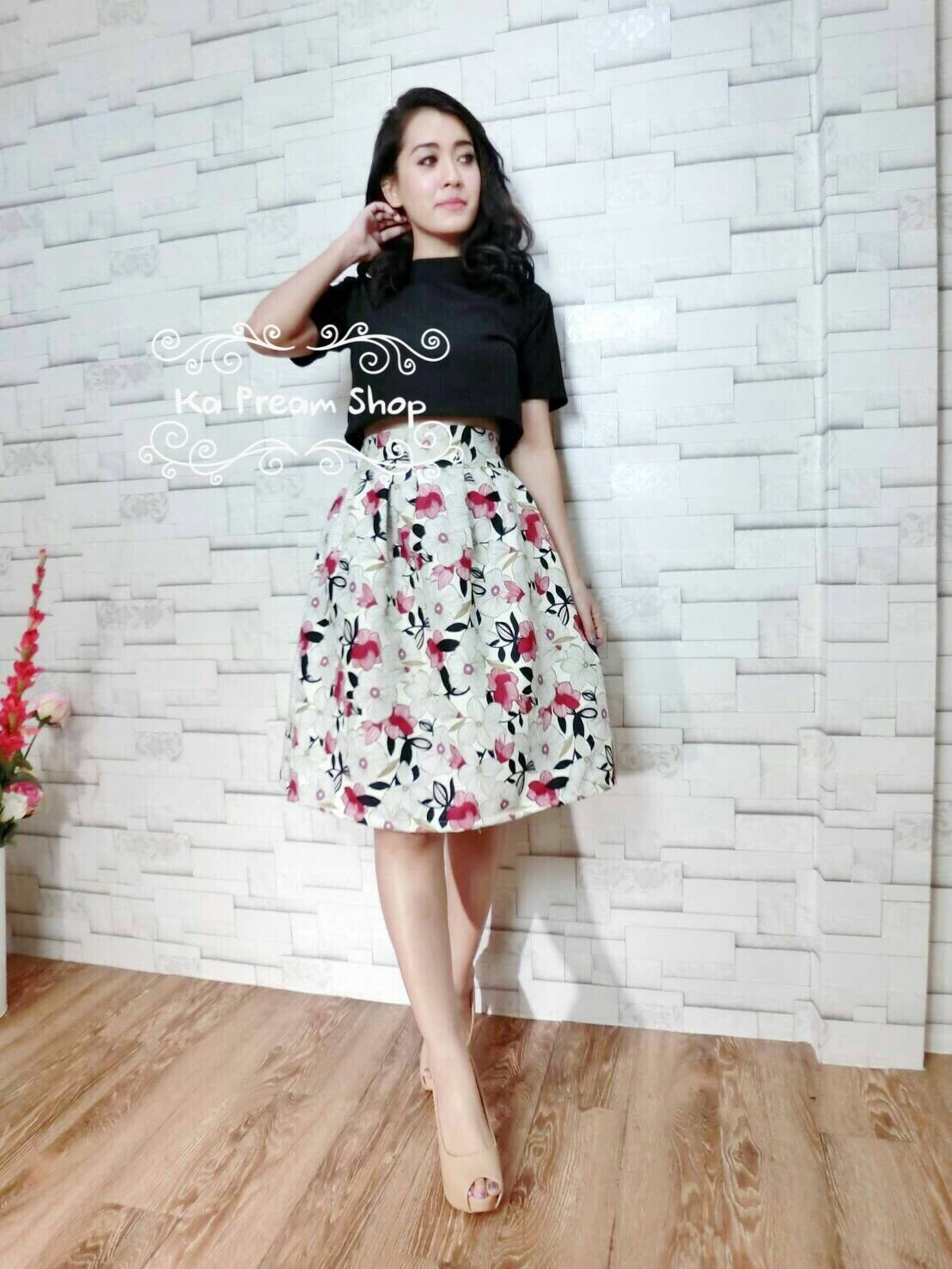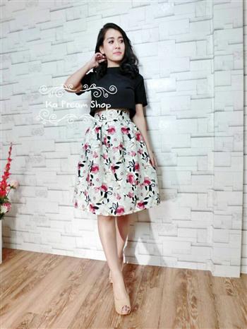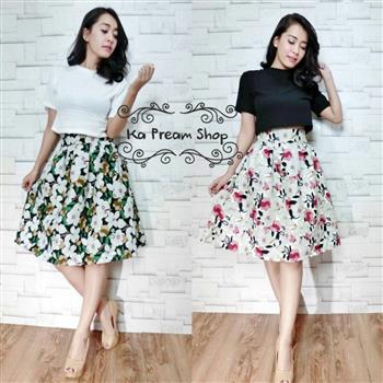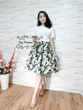 ✨เสื้อยืดไหมร่อง + กระโปรงทรงสุ่มบายนิดๆๆลายดอกไม้ งานผ้าสวย ไฮโซมากค่ะ
