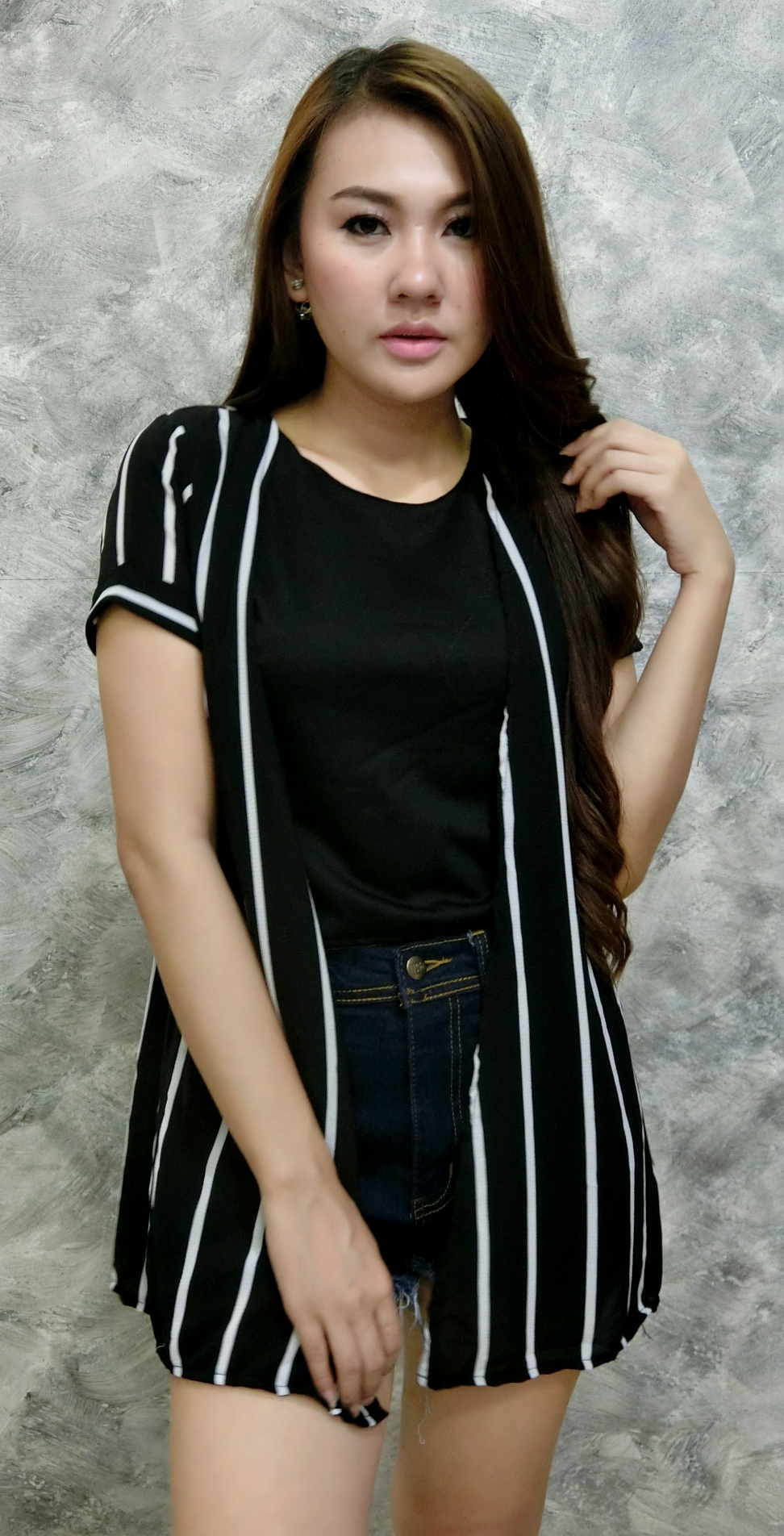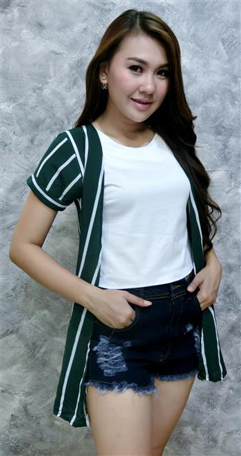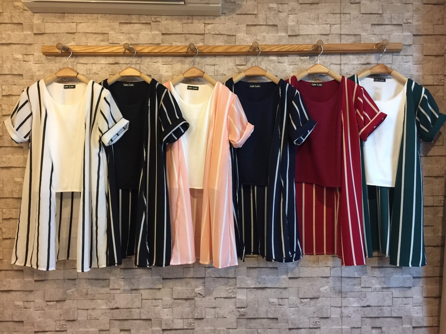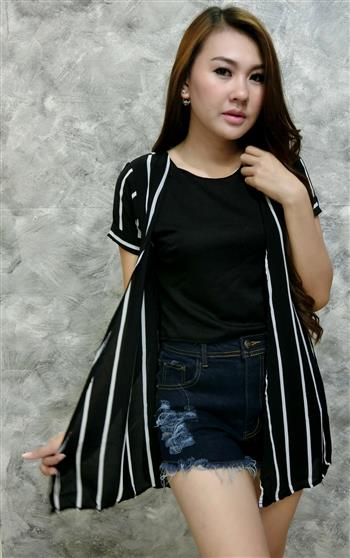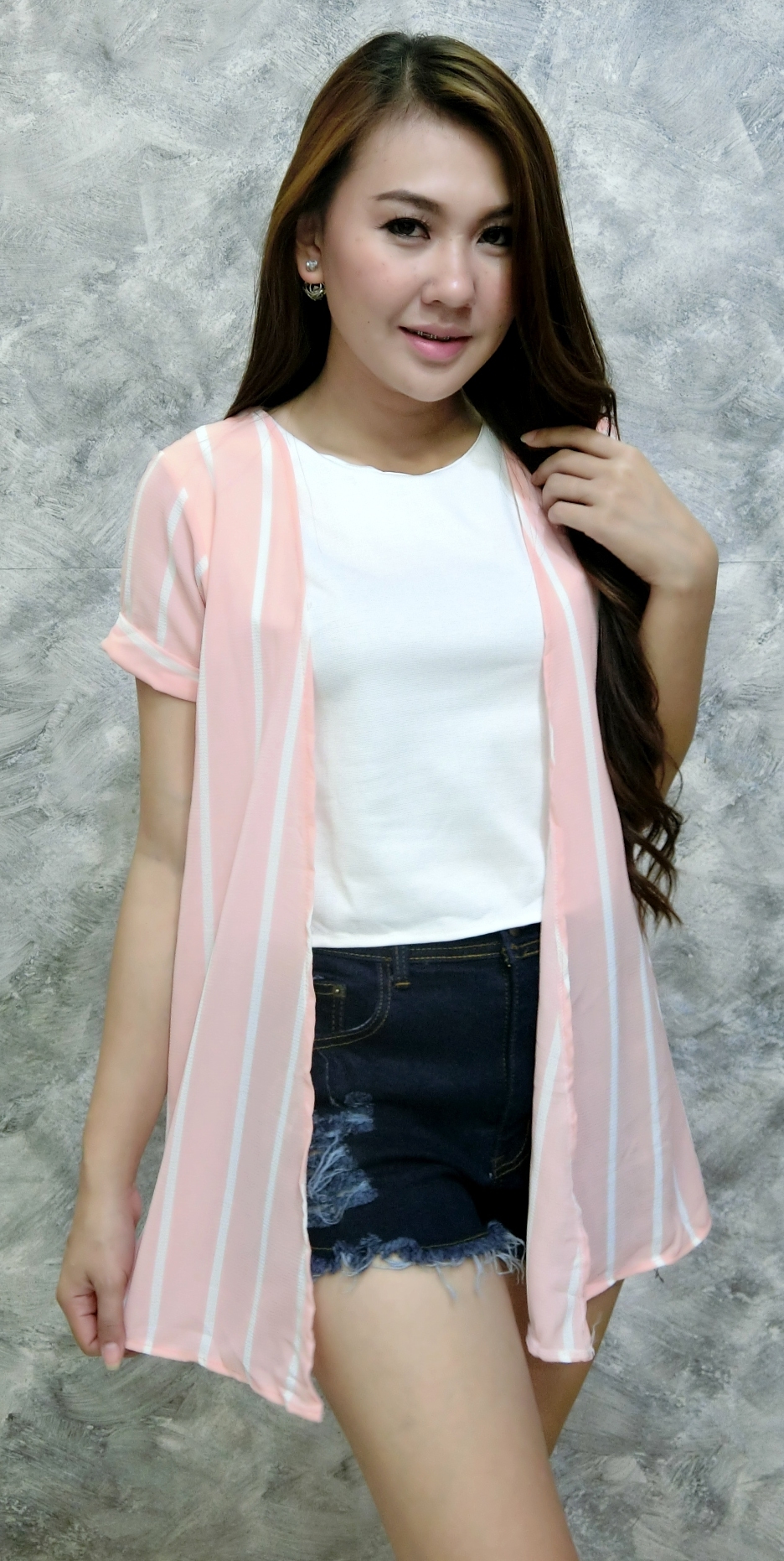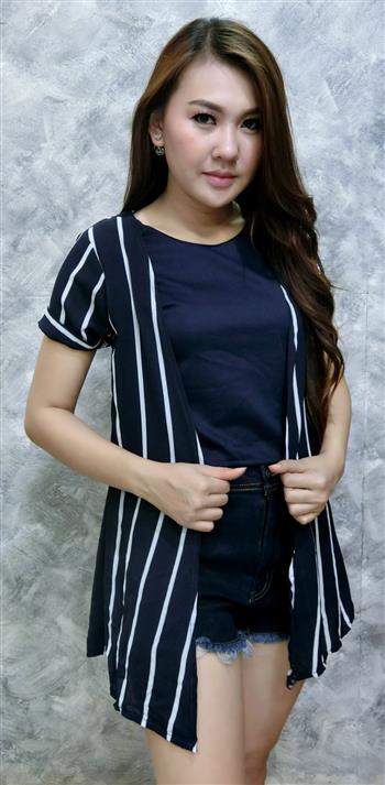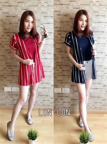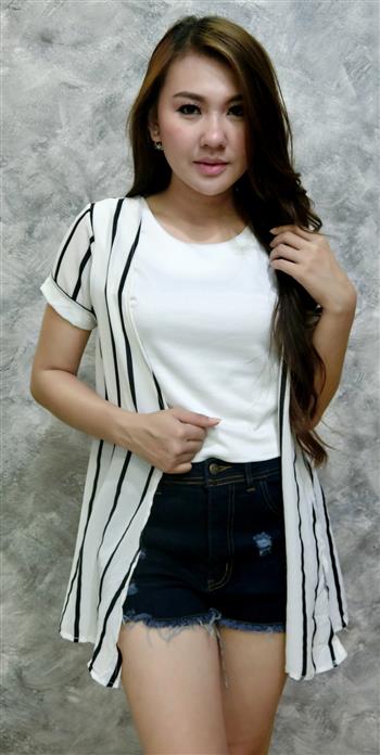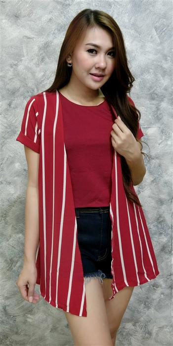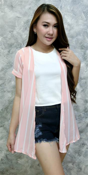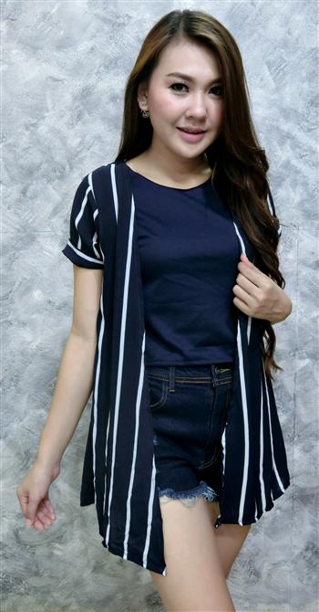 เสื้อแขนสั้น ติดคลุมลายริ้วตัวยาว ใส่สวย